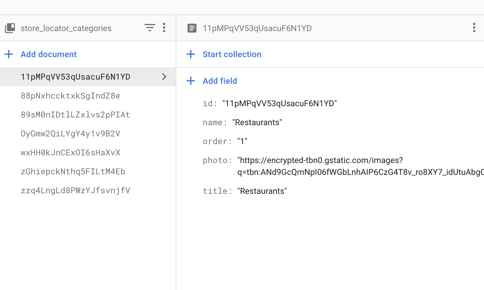 id: String // same value as the document id photo: String name: String order: String // the category display order